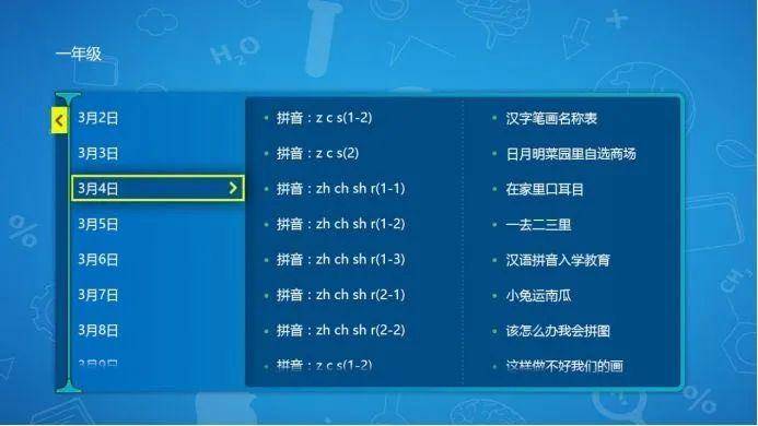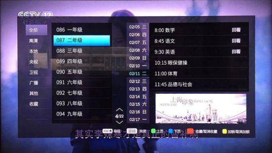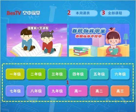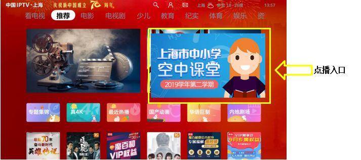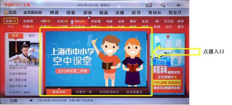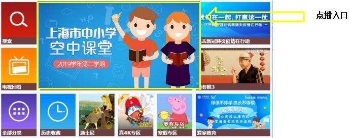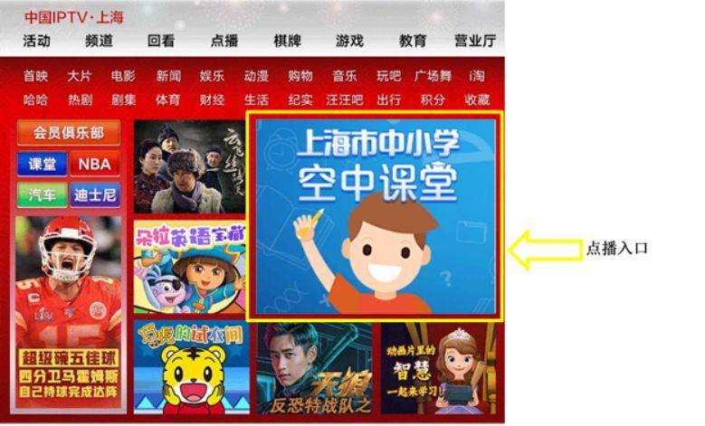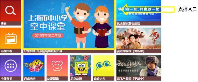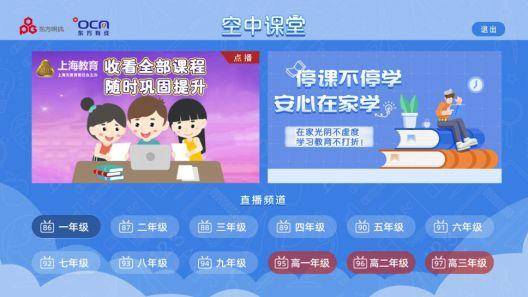 上海市各年级课程内容均由IPTV指定频道进行首播,用户可通过直播列表和“空中课堂”入口点击收看。