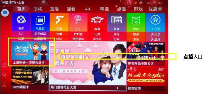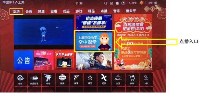 IPTV包括有:上海IPTV(电信)、上海IPTV(移动)、上海IPTV(联通)。用电视机遥控器打开电视,用机顶盒遥控器进入首页,在首页找到“空中课堂”入口,点击进入。