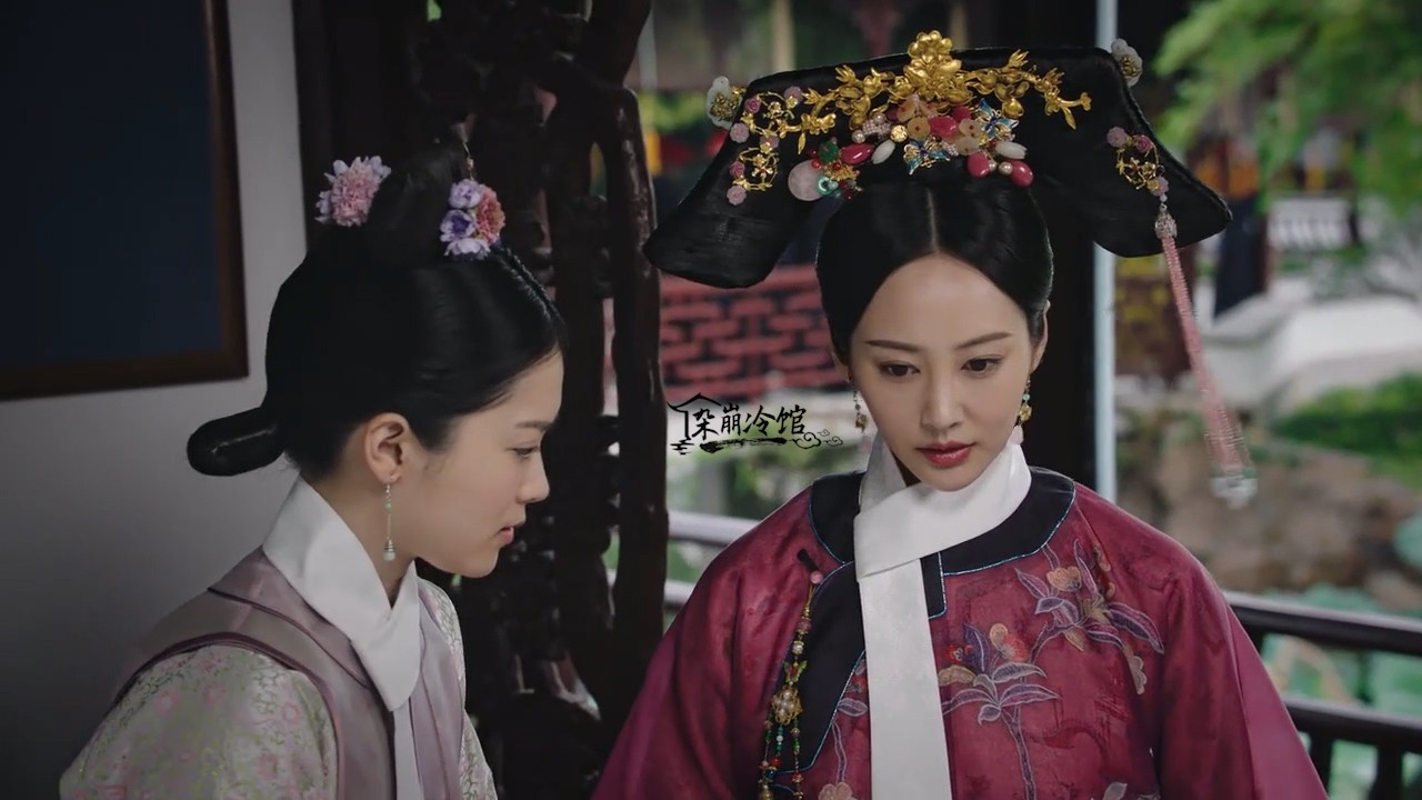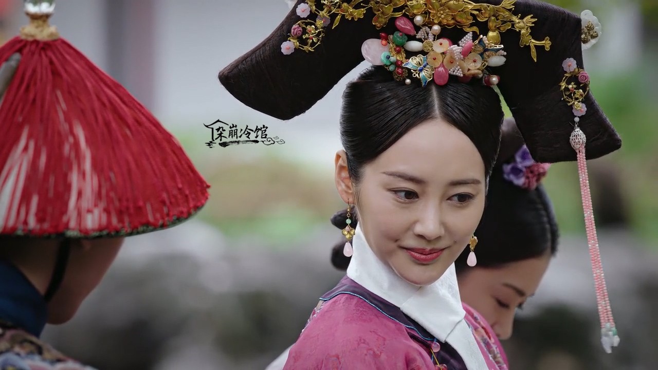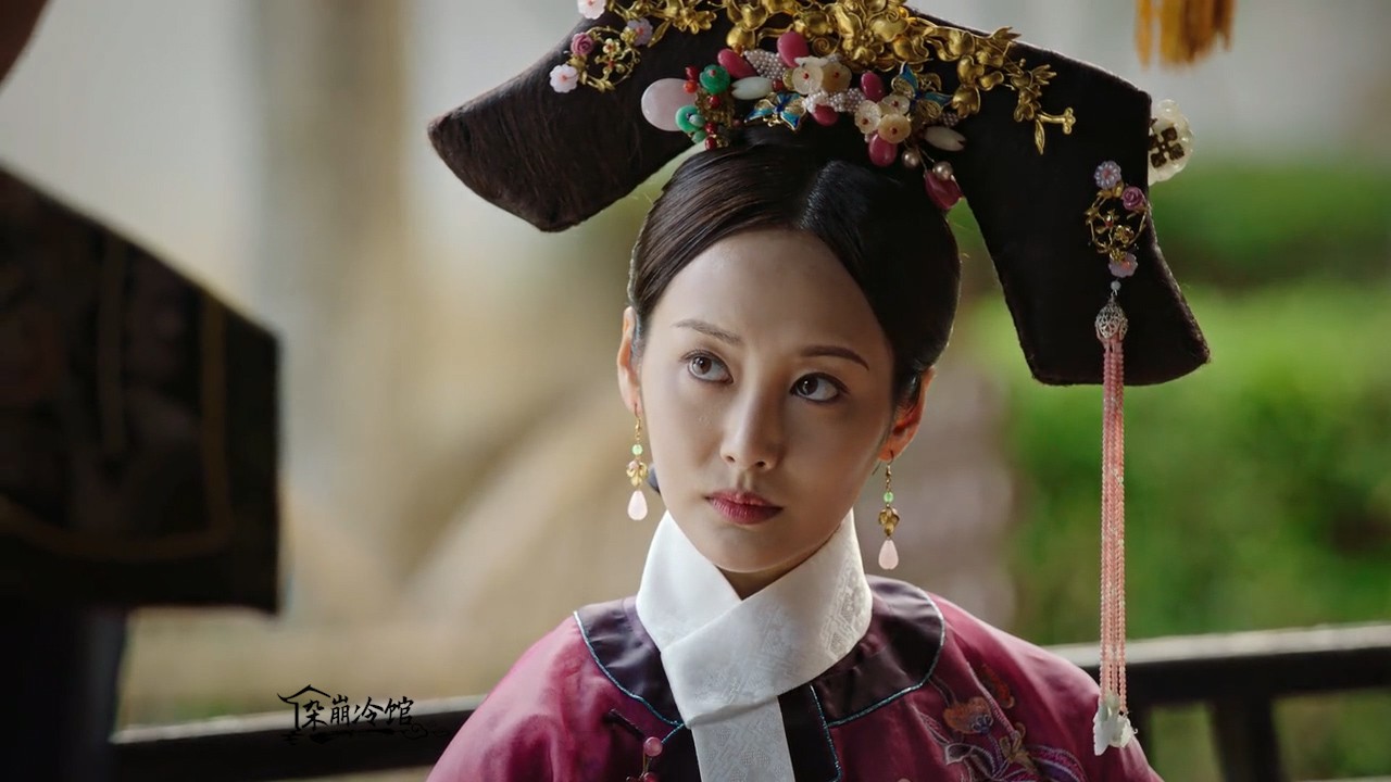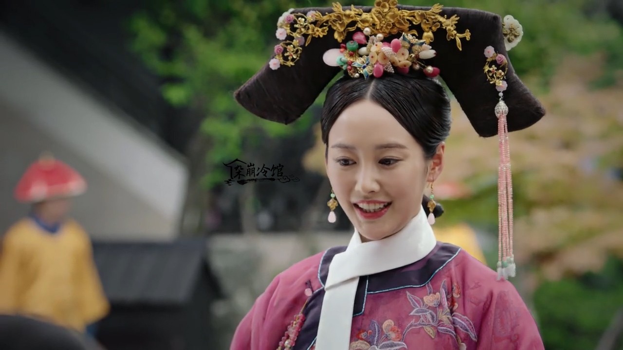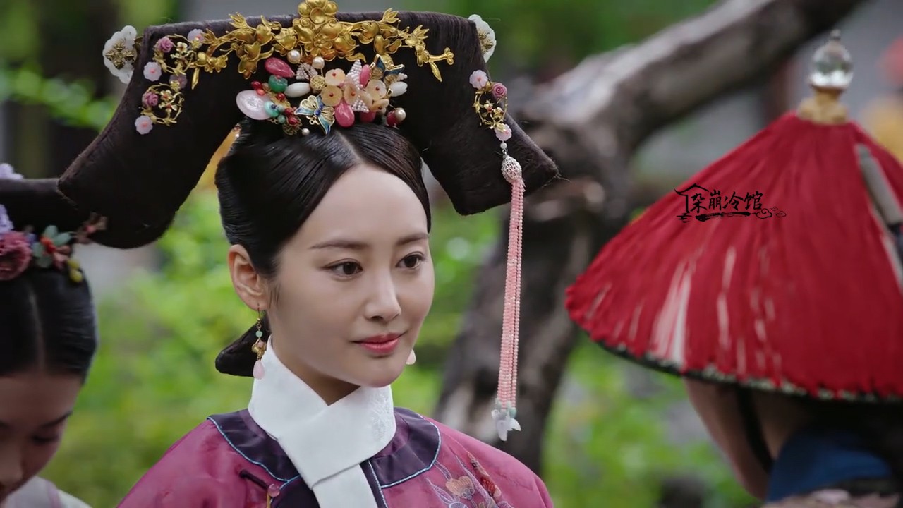 如懿传|卫嬿婉炩妃的旗头发饰:赤金环玉石扁方、赤金花叶簪