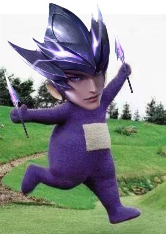 马超作为紫色的男人,居然配上天线宝宝毫无违和感,是不是很像上幼儿园的宝宝?平时排位头都被他锤爆了,没想到原来他这么可爱!