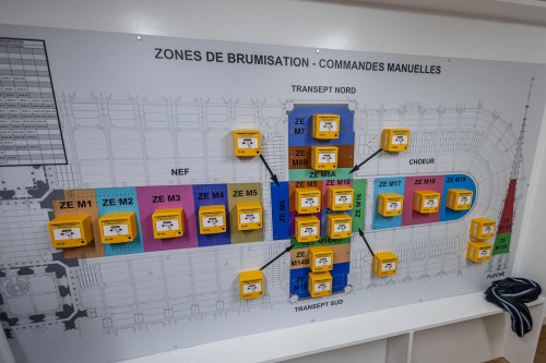 这是11月29日在法国巴黎圣母院拍摄的消防控制系统。 新华社/法新