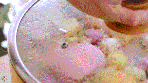 2、蒸宝宝米汤锅里放适量果蔬馒头,大火蒸6分钟,玉米浓汤食谱,玉米浓汤食材,关火后焖2分钟后出锅。