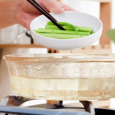 3、芦笋去根部后,切小段,土豆玉米浓汤怎么做,土豆玉米浓汤英语,放入开水中焯约做玉米1分钟后捞出沥干,土豆玉米浓汤,土豆玉米浓汤功效。