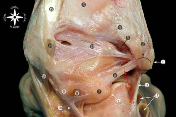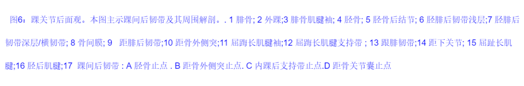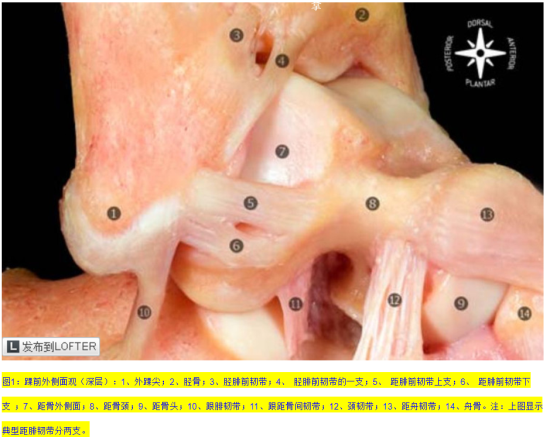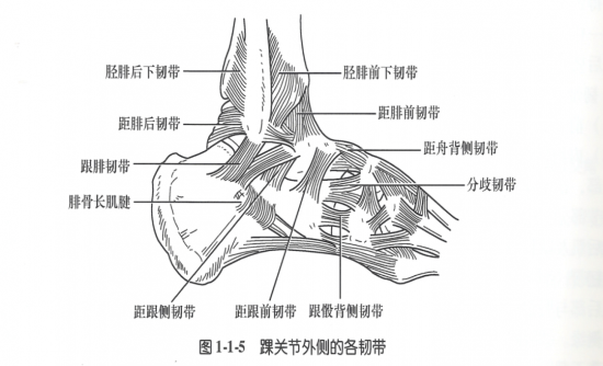 其次,大多数踝关节周围的韧带方向均向下及后行,均有阻止距骨后移的作用。