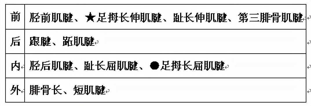 (3)内翻:有廻长屈肌、趾长屈肌、胫骨后肌和胫骨前肌。