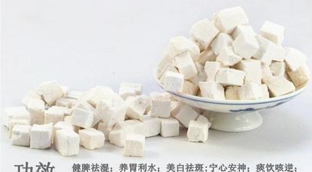 5、茯苓。味甘、淡,性平,归心、脾、肾经。具有健脾补中,宁心安神,利水参湿作用。胃苓片:苍术、厚朴、陈皮各250g,茯苓、白术各300g,猪苓、泽泻各200g,共研成末,制成片剂。每日服3次,每次4-6片,温开水送下。