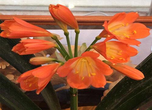 君子兰叶片四季青翠,犹如扇面,排列整齐,油亮嫩绿,花朵硕大而鲜艳。再加上是春节左右开花,非常喜庆。