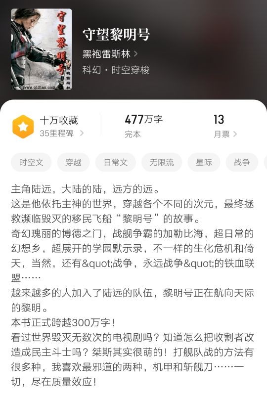 书评:无限主神流,做主神的奴隶,哪有做主神男人爽!这是一本挂着科幻,实为无限,看似专情,最后种马的小说。副本有博德之门、加勒比海盗、幻想乡、倚天、学园都市、质量效应等。整体比较正能量,主角和他的后宫们在质量效应世界怼外星人,写出了星辰大海的感觉。主角表示,除了自己一切轮回者都是屌丝。