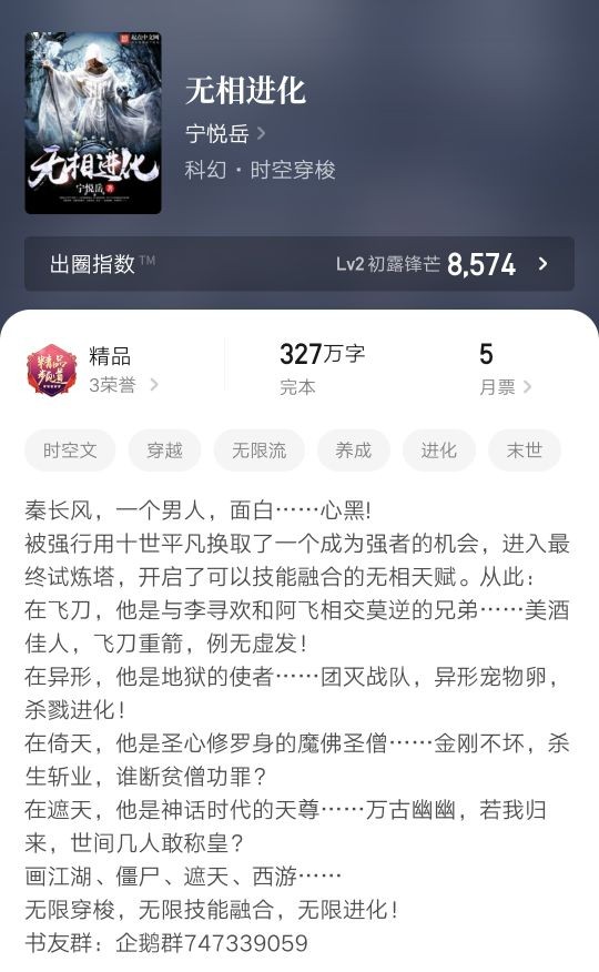 书评:无限类,数据流小说,主角拥有融合技能的天赋,融合小李飞刀类似的技能。在他人不熟悉的,自己很熟悉的世界,进化,黑暗流,主角杀戮果断,做得很好。