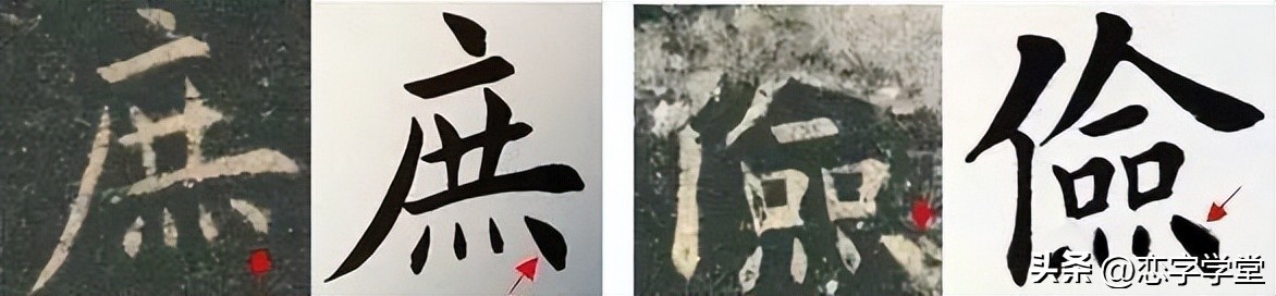 (3)相对来说,田字点比较规范统一,而欧字变化更丰富。以下欧公排点的方法田字极少见。