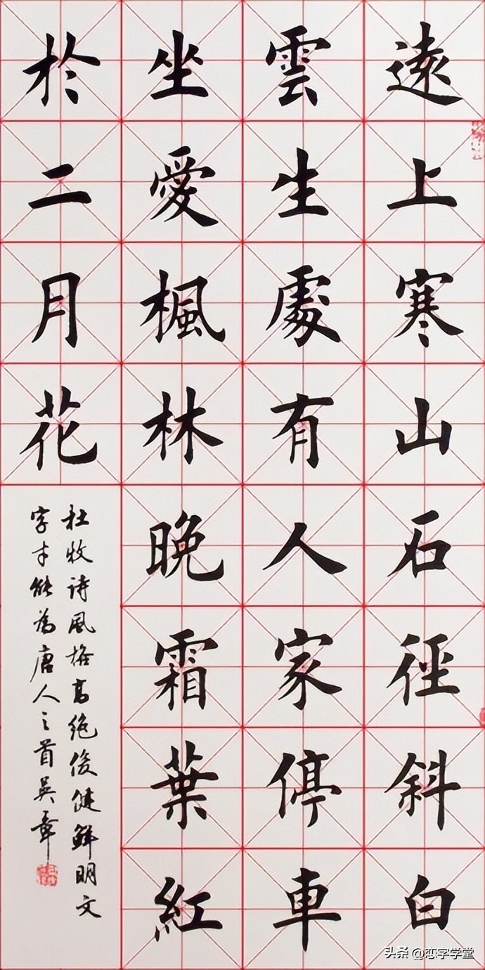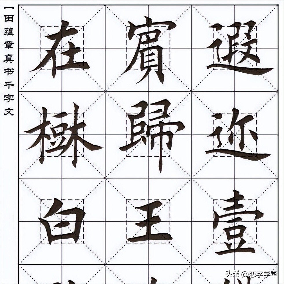 我们知道所谓的“田楷”是由“欧楷”演变而来,在大多数上基本是一致的,但是也有区别,具体地说“田楷”更加趋于一种所谓的标准化,更加接近于印刷体化