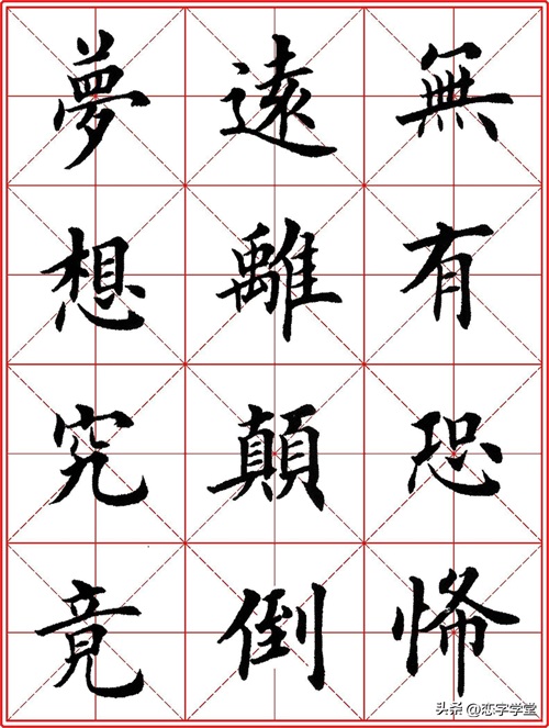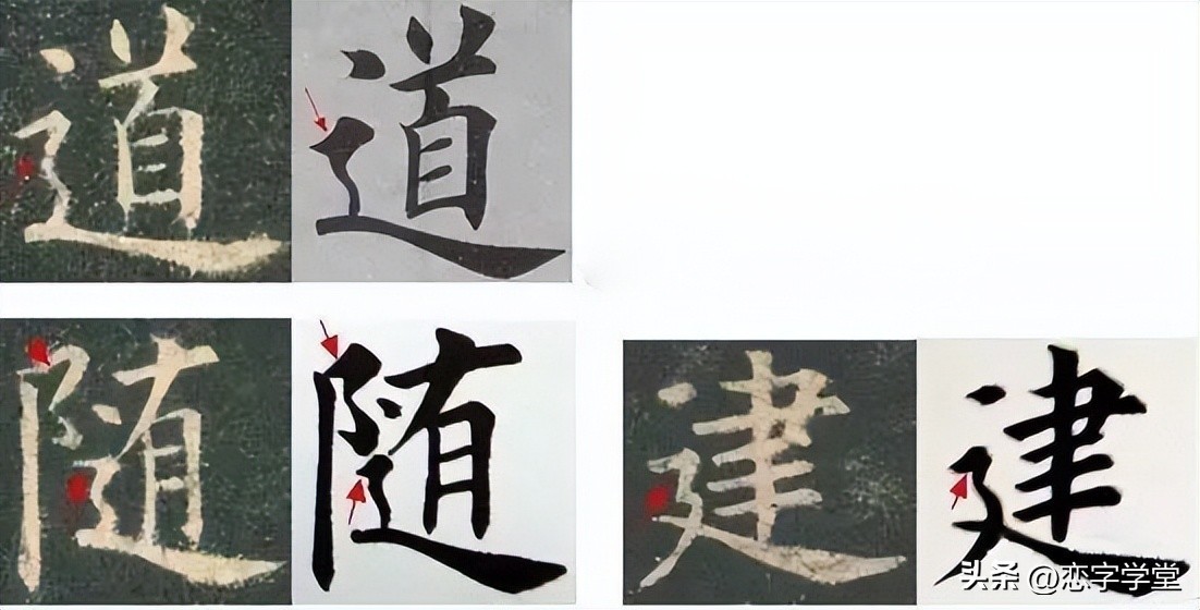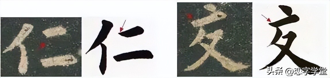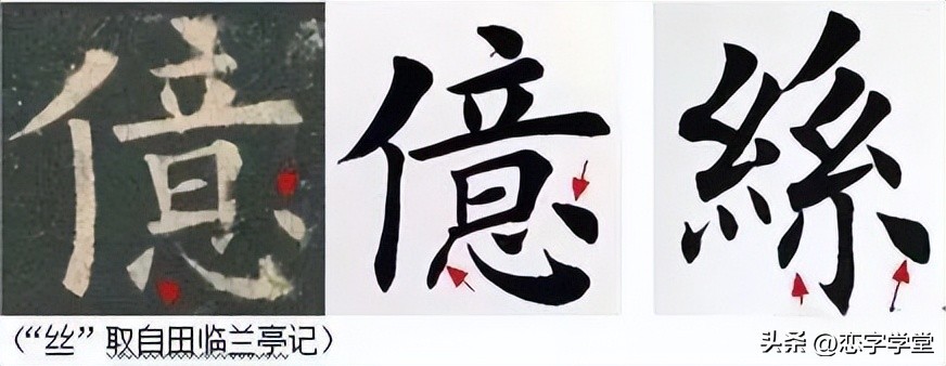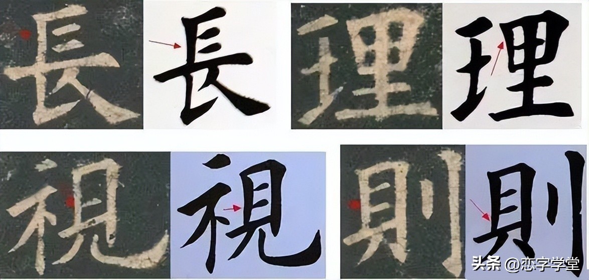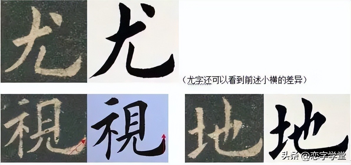 所以,欧楷和田楷,这两种书体最为根本的区别就是,他们俩是一种继承和被继承的关系,田楷继承了欧楷的某些特质,在欧楷的基础上逐渐发展演变出来一种新书体,而欧楷是田楷的直接来源。下面我们就来通过具体的举例来更直观的观察两者区别。