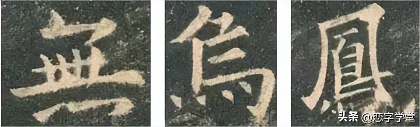 戈钩田楷写得更加有特色,一般统一为外方内圆,且一般出钩处明显粗重于中前段。欧公一般也使用外方内圆,但整个钩的粗细变化没有田楷大。欧的戈钩也不绝对外方内圆,没有像田楷那样的统一性。下面三个钩,欧用了三个形态(这里不排除有拓本字口变形的可能),田临本则均使用标准钩法。