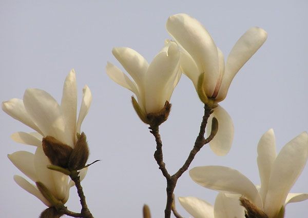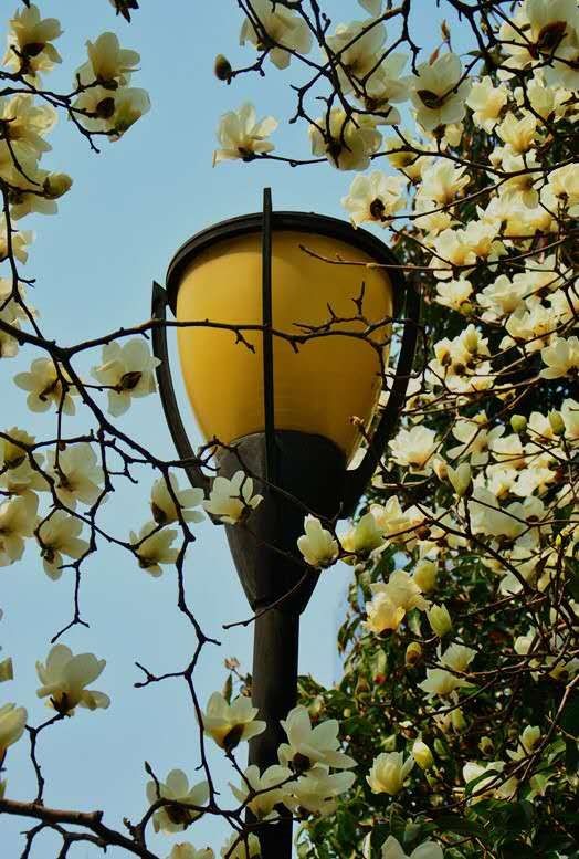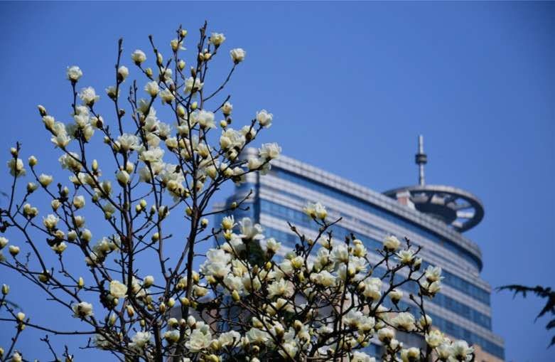 每到三月,市民都会惊喜地发现,料峭春寒中唯有“白玉兰开花了”。这是一种落叶乔木,先开花后有叶,挺拔向上开放的花朵,不仅温婉如玉而且馨香如兰。早春时节一片肃杀中,独自绽放在高枝半空中的白玉兰花,似雪涛如云海,束素亭亭玉殿春。