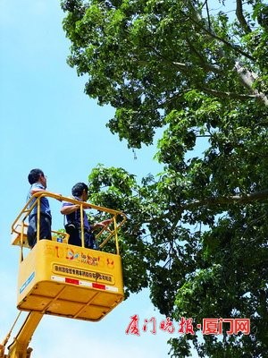 台海网9月19日讯 据厦门晚报报道 最近,厦门植物园的工作人员都面露喜色。有什么好事呢?原来,移居厦门几十年的猴面包树(学名Adansonia digitata)终于结果了。该园主任张万旗特意乘坐高空作业车,深入树中近距离观察,兴奋之情溢于言表:“我盯这棵树好几年了,现在看到它挂果,很兴奋。之前国内只有华南植物园、海南农科所有结过果,所以很稀有。”