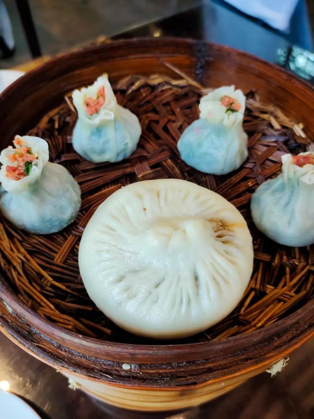 以新鲜荠菜为馅,点缀火腿粒,扬州名点双绝之一