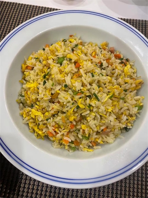 俗称碎金饭,采用隔夜香梗米饭,辅以土鸡蛋、海参、火腿、鸡脯、虾仁、青豆、冬笋、香菇等食材炒制而成。