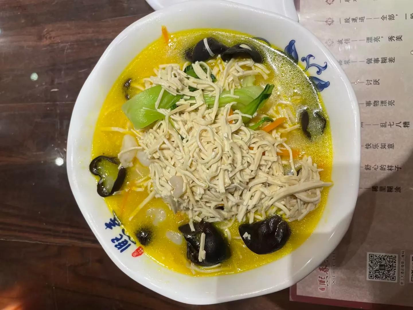 又名乾隆九丝汤,将扬州特有的豆腐干纯手工切成细丝,加入含有虾仁、火腿、木耳、竹笋、肴肉等食材的鸡汤中炖煮,鲜香浓郁