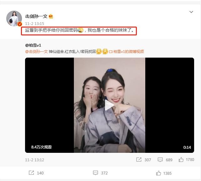大冠军孙一文也在下方调侃:“监督到手把手给你找回密码,我也是个合格的妹妹了。”