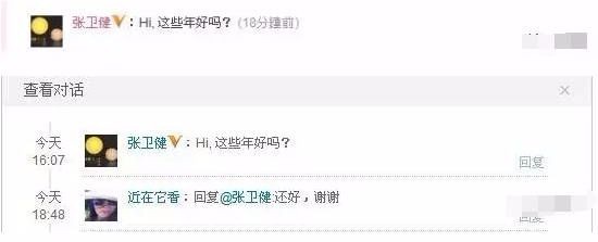 2012 年,眼尖的网友在张卫健的动态中,发现了他和“近在它香”的互动。