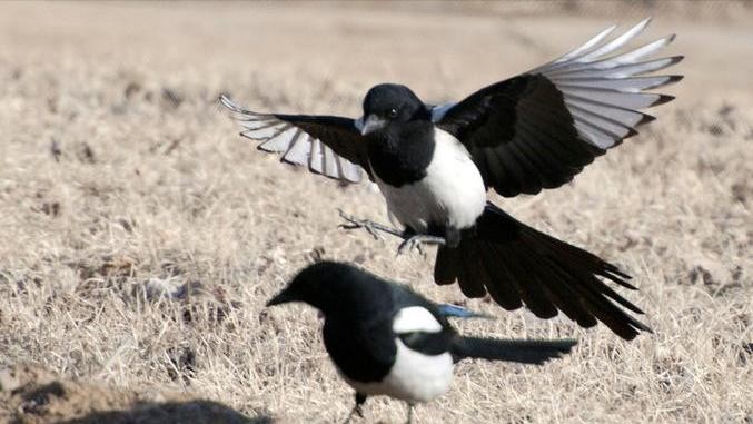 一旦发现目标之后,喜鹊就会立刻对食物下手,然而它们却不是十分冲动的就冲上去,而是分工明确。