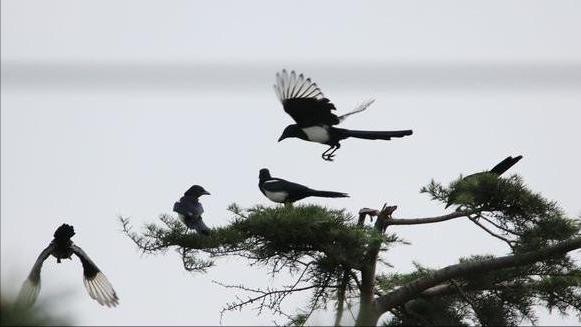 在它们之中,还有一个高智商的表现,那就是如果其中有小伙伴去世的话,那么其它的喜鹊还会围成一圈举行葬礼。