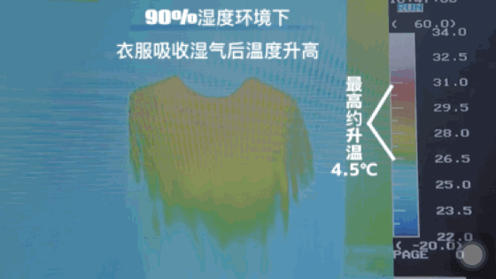 冷静一瞅发现不对,在90%的环境湿度下做测试,Heattech内衣最高升温也只有4.5℃而已。