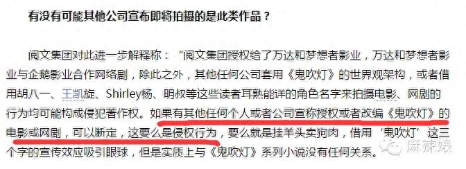 而且企鹅影业说的很明确,别人公司或个人,没有任何资格去借用“鬼吹灯”这三个字来宣传。