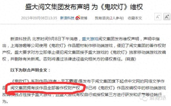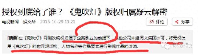 而且有个有意思的点,就是《鬼吹灯》这个版权,其实是属于起点的。大家都知道,《鬼吹灯》开始红的时候,就是在起点的,起点早就把这个版权给买断了,所以后来天下霸唱说这个找起点去买,其实也是合法的。起点呢,为此还和别人撕逼过的。