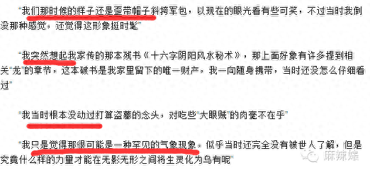 他不怎么读书,也没有什么阅历,没有去过什么地方,更没有什么插队之类的经历。所以,一切的一切都是自己在那瞎编出来的。