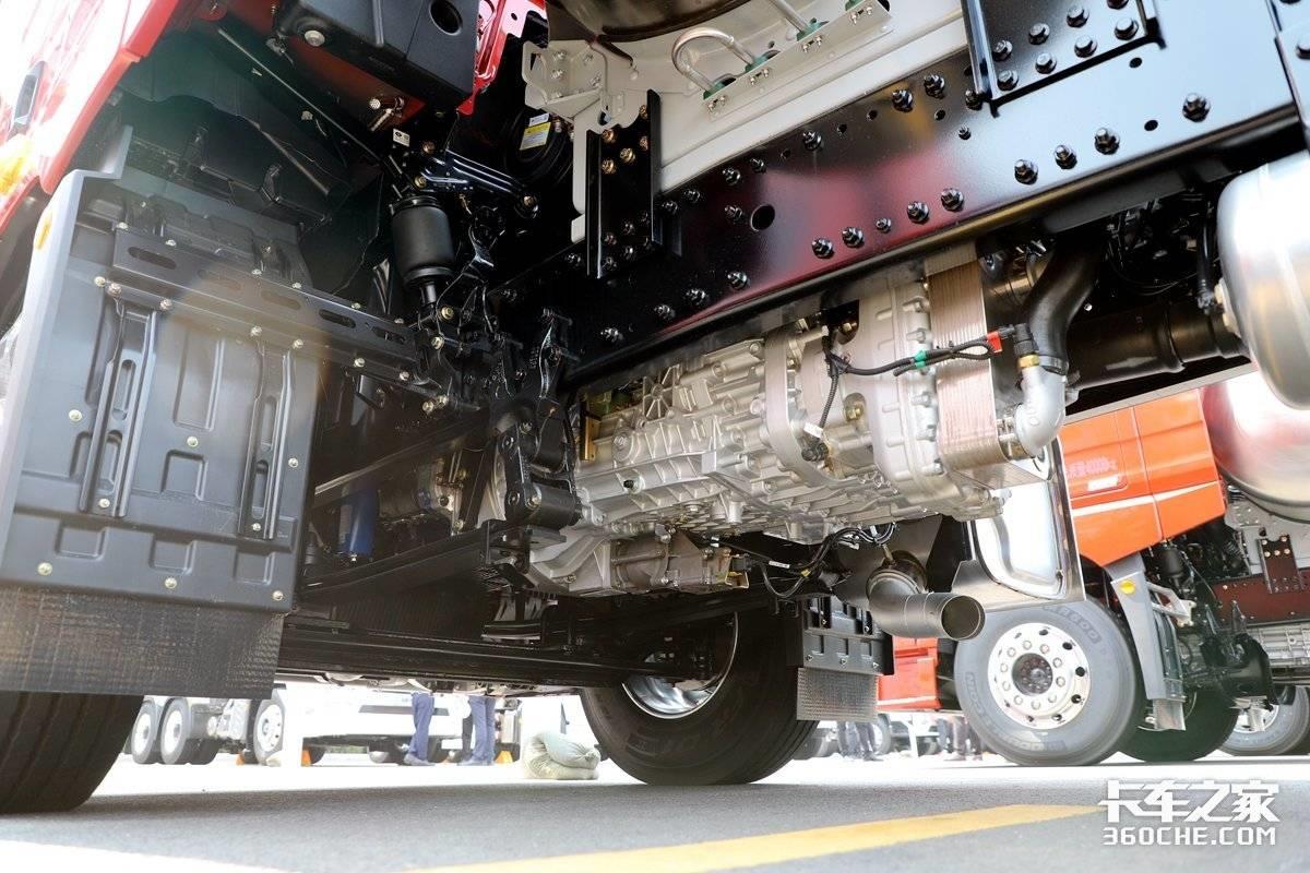 后桥为经典的435升级冲焊桥,带有轮间差速锁,并且它还拥有15万公里的长换油里程,能在一定程度上节约保养成本、提高出勤率。实拍车的后桥速比为3.417,当然它还可以选择不同的速比搭配,以满足不同卡友的使用场景。