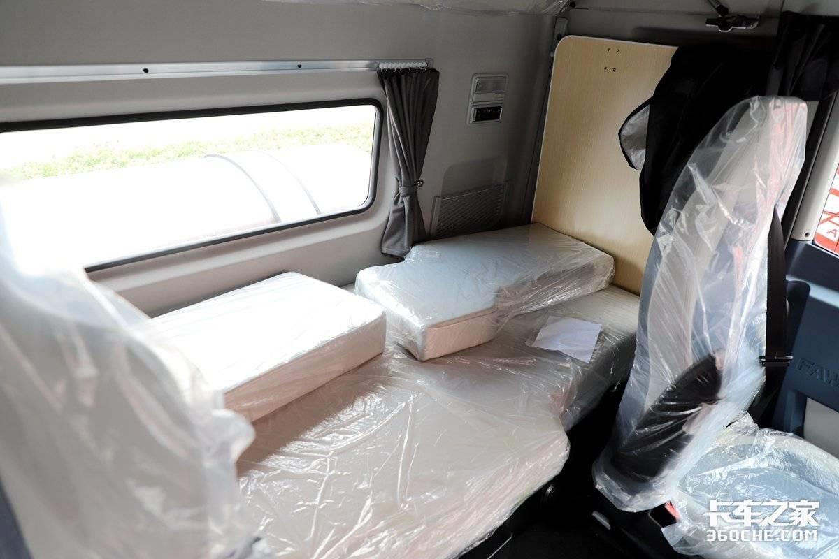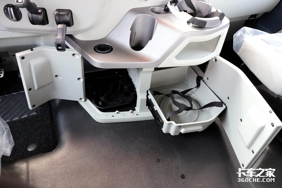 打开解放JH6的车门,就能发现这辆车优秀的空间表现,其驾驶室地板的突起高度在5-8公分左右,基本上可以说完全释放了驾驶员右侧的空间,这样我们在车内活动、进出卧铺时可以更加轻松自如。