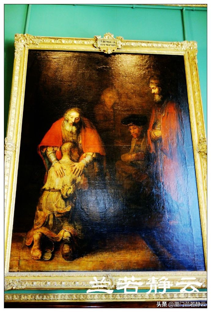 这幅是荷兰黄金时代绘画三杰之一伦勃朗的《浪子回头》,画家将光线处理得太出彩,以至于摄影中有一种布光叫“伦勃朗光”。以前就看过这幅画,没想到有朝一日能站在真迹面前。