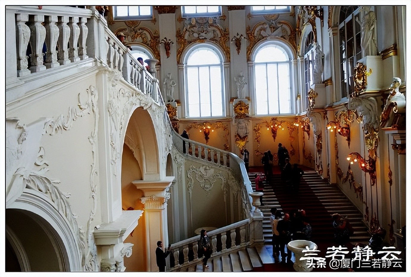 游客从这个装饰奢华的楼梯进入冬宫宫殿