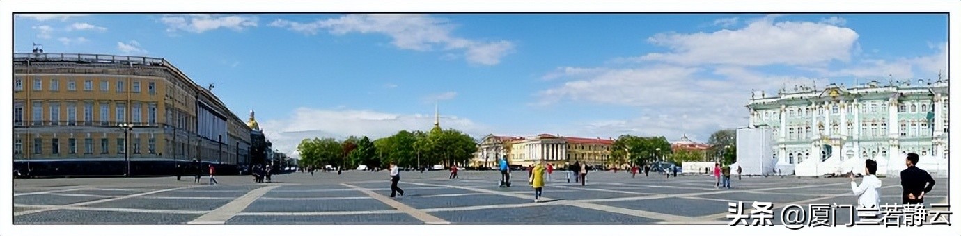 冬宫广场是圣彼得堡的中心广场,面积约有5万平方米,周边被一系列宏伟建筑群所包围。