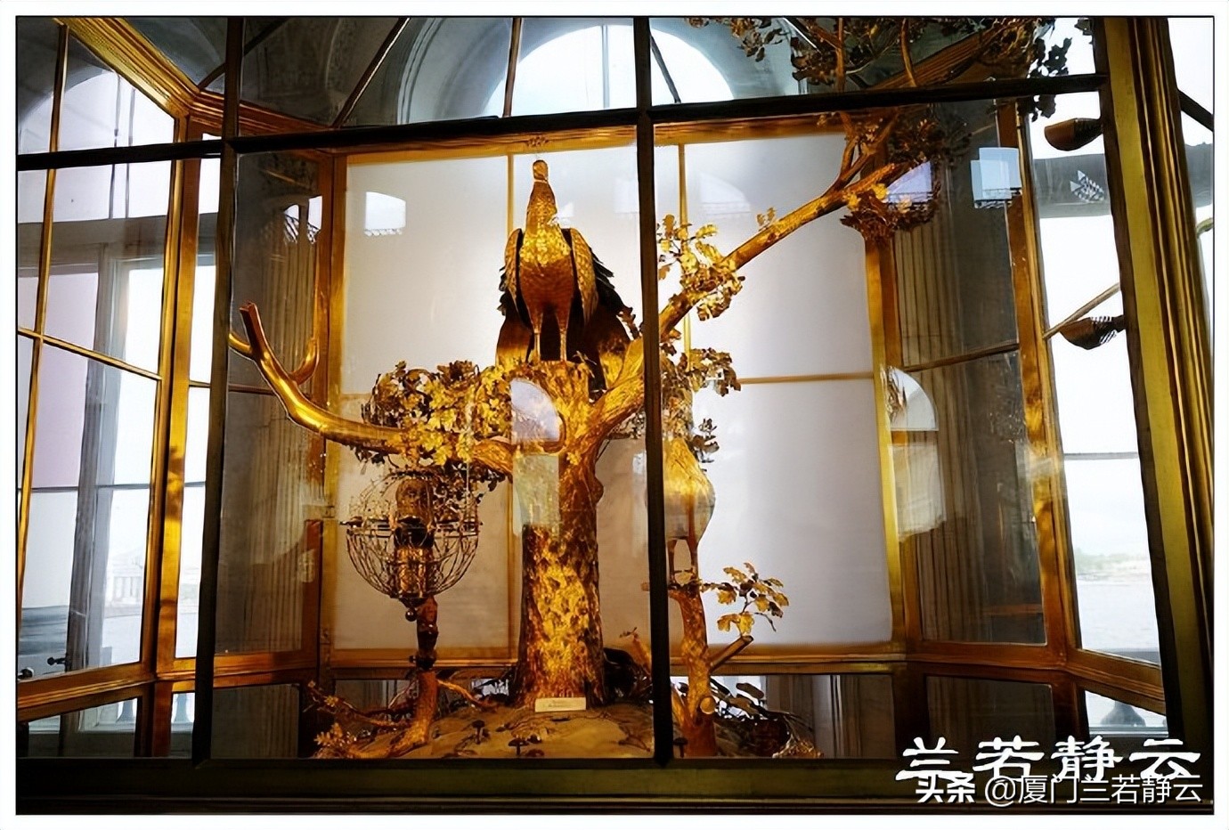 时间有限我们只能走马观花看一些比较有名的藏品。这是冬宫博物馆里著名的“金孔雀钟”,至今有200多年的历史,上面有孔雀和公鸡,据说启动机械后孔雀会开屏,公鸡会啼鸣,充满趣味。