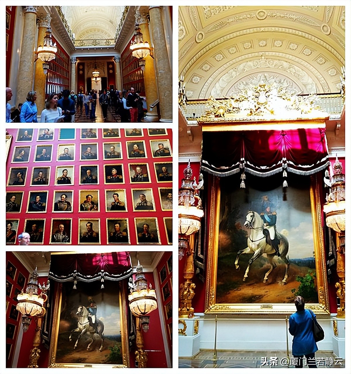 这是“战争走廊”,两侧红色的墙壁上悬挂着329幅油画肖像。