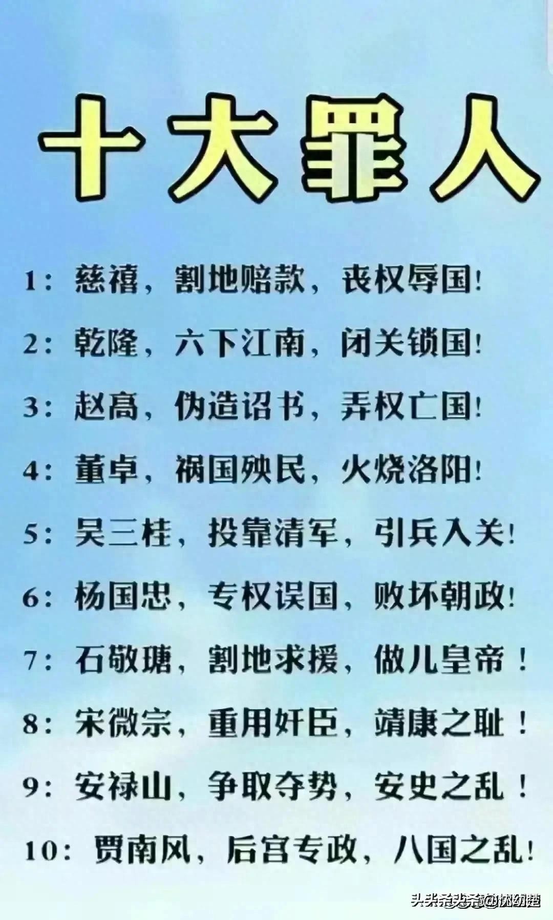 终于有人把历史十大罪人,整理出来了,收藏起来看看大涨知识。