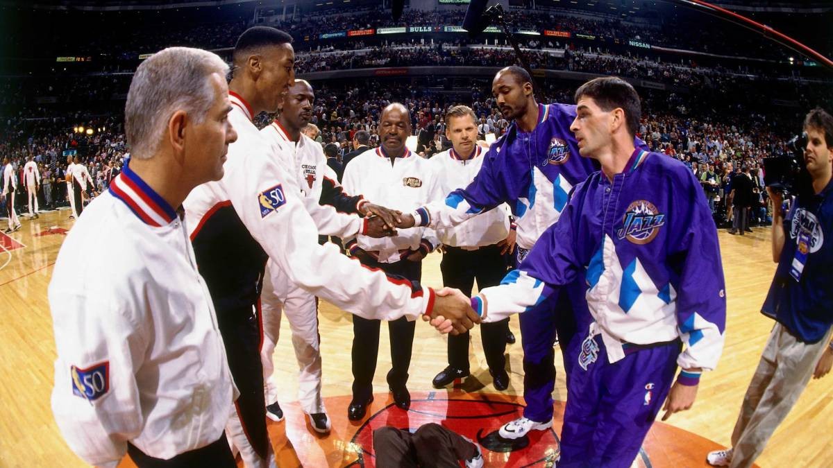 96-97赛季,是犹他双煞合作的第十年,二者的挡拆配合已经臻至化境。但这次他们的对手,不是勇士、不是火箭、也不是开拓者。