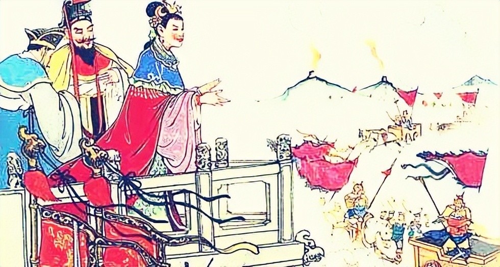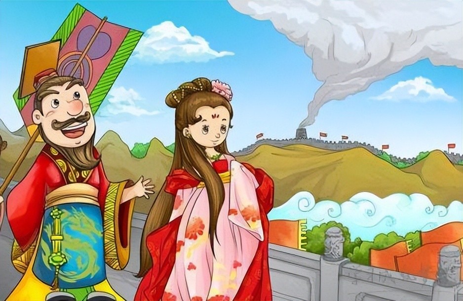 褒姒天生不爱笑,周幽王为逗她发笑,可谓绞尽脑汁。当时西周的都城镐京离犬戎人很近,为了防备犬戎的入侵,周朝在镐京附近的骊山地区修建了烽火台。烽火狼烟是古代的军事报警装置,在有敌人入侵时,就点燃烽火,通知周边守卫城池。周朝与周边诸侯约定,一旦犬戎人入侵,周朝当即点燃烽火,敲响大鼓,诸侯见到就知道天子有难,要立即起兵入京勤王。周幽王突发奇想,点燃烽火,诸侯全部闻讯前来救驾,到了发现并没有犬戎人入侵。褒姒见诸侯茫然无措的样子,露出大笑。周幽王为此感到高兴,又数次点燃烽火,引诸侯前来,逗褒姒发笑。