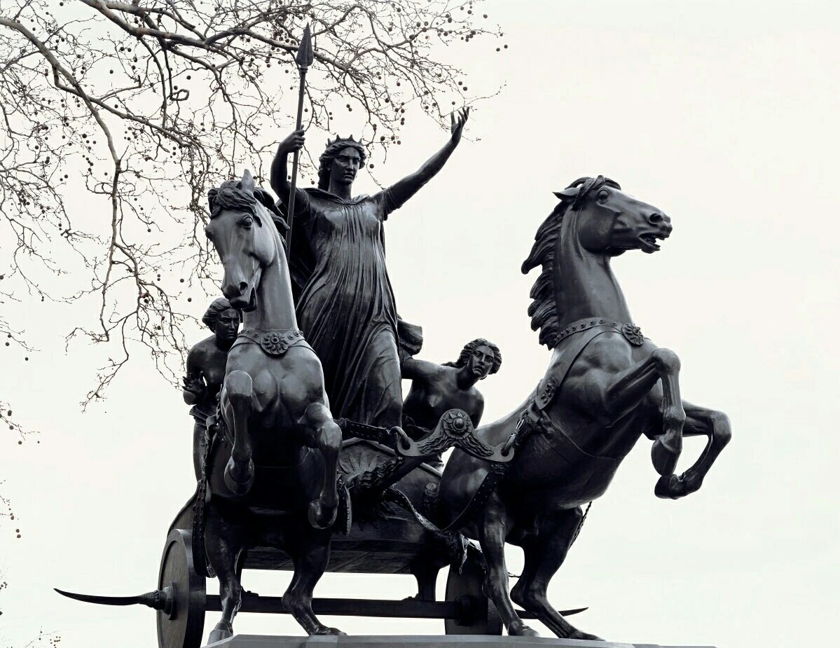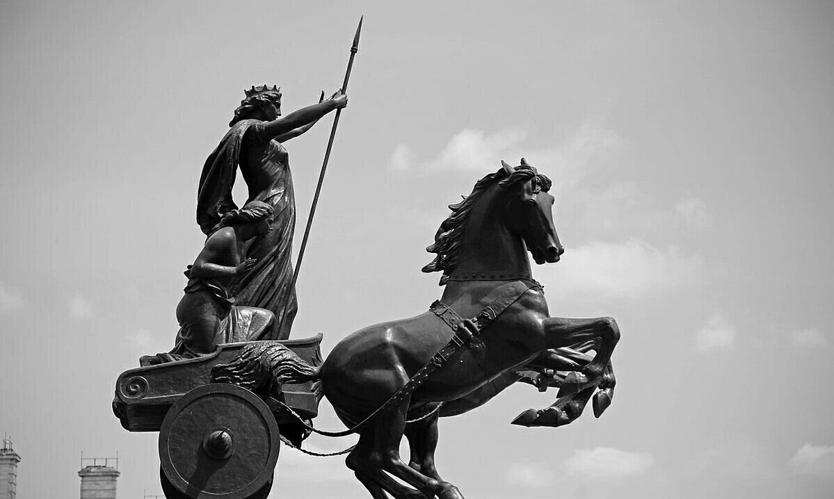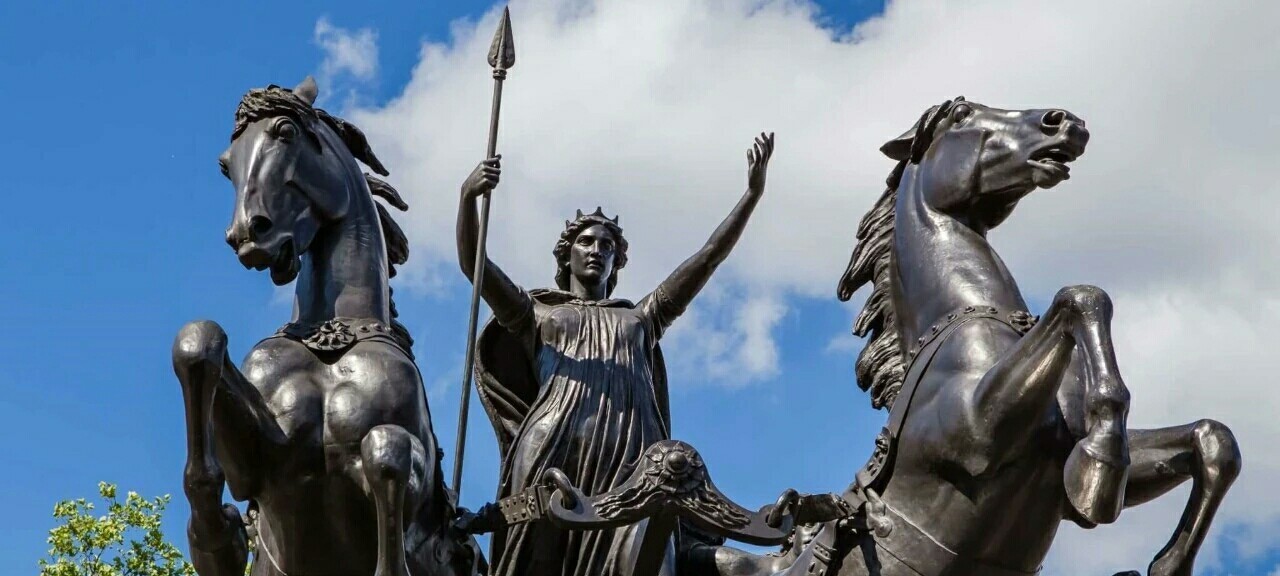 在英国伦敦,横跨泰晤士河的威斯敏斯特大桥的西端,矗立着一组宏伟的青铜雕像那就是——赫赫有名的“布狄卡女王”和她女儿们驾驶刀轮战车的雕像,与著名的大本钟隔街相望。