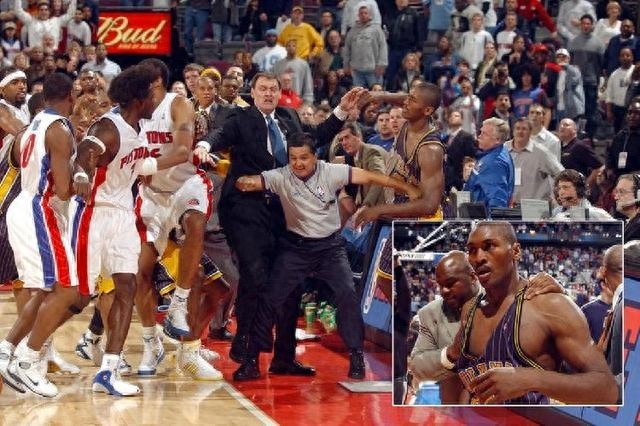 说起奥本山宫殿,很自然而然地,就会联想起16年前印第安纳步行者队和底特律活塞队的斗殴事件。有人说,那是NBA联盟最黑暗的一天,因为事后被检控起诉的,多达12人——当中包括了五位步行者队球员如杰梅因-奥尼尔、慈-世平、大卫-哈里森、安东尼-约翰逊和斯蒂芬-杰克逊,还有牵涉到七位球迷。有人说,这场斗殴彻底地改变了步行者队的命运,毁了一支冠军球队的前程与布局。确实,后来就发生了阿泰斯特要求交易的事件,拉里-伯德的一副好牌,就这样没了。