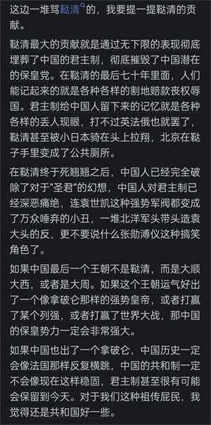从个人思考与自我认知的角度出发,1644 年满清未入关的这一历史假设,让我们深刻认识到历史发展的复杂性与多元性。历史并非是一条既定的、不可改变的轨道,而是由无数的偶然因素与必然规律相互交织而成。在这一假设情境中,我们看到了不同政治势力在特定历史环境下的机遇与挑战,也看到了中国在面对内部困境与外部压力时可能出现的不同走向。这提醒我们在研究历史与思考现实问题时,不能仅仅局限于历史的既定结果,而应该深入探究历史事件背后的多种可能性及其潜在影响。对于当代社会而言,我们可以从这一假设中汲取教训,认识到一个国家的稳定与发展需要良好的政治治理、内部团结、经济繁荣以及文化创新。在全球化的时代,我们应积极面对国际竞争与挑战,加强国际交流与合作,同时保持自身的文化特色与民族精神,在历史的长河中不断反思自我,提升自我认知水平,以更加沉稳、睿智的态度面对历史与现实的交织与碰撞,为构建人类命运共同体贡献力量。