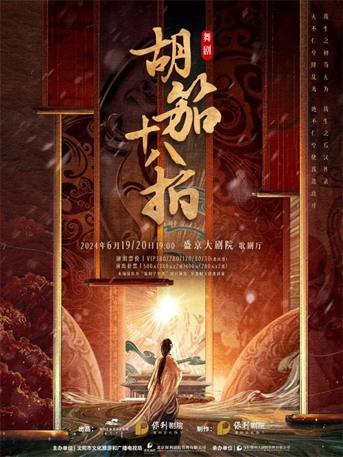 舞剧《胡笳十八拍》演出时间 | Date & Time2024.06.19/20 19:00演出地点 | Venue盛京大剧院·歌剧厅演出票价 |