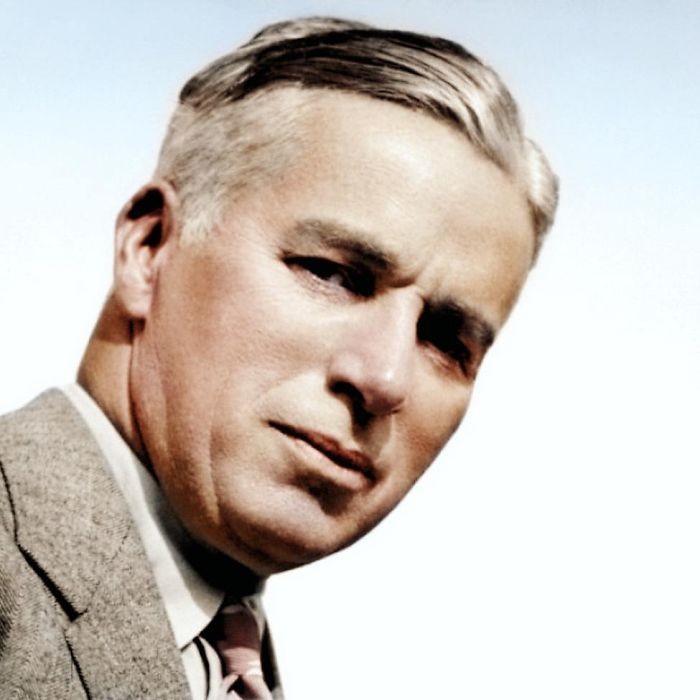 卓别林晚年照片,这时他已经剃掉了他标志性的小胡子。