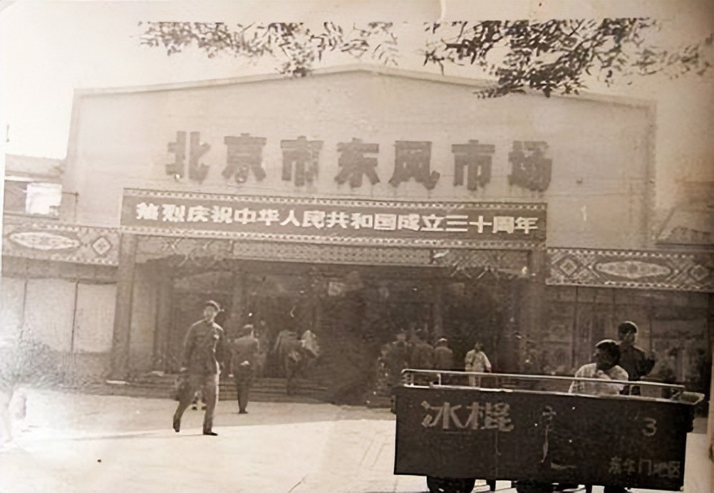 解放初期,北京人口大量增加,商业需求旺盛。北京市政府在中央的指导下,着力将王府井打造成北京市的重要商业区域。一是由政府出面“招商”,特意从上海、天津等地迁来不少名店,如“四联美发”“中国照相”“雷蒙”“普兰德”等老字号,以助力王府井大街商业业态的完善。二是市政府就地开发建设了北京第一座国营大型综合百货商场——北京市百货大楼,以满足普通大众的生活需求。王府井百货大楼是北京唯一一家由商业部批准,可以破例在全国享有商品采购权,享受二级批发站待遇的零售企业,在进货价格上还可以享受优惠政策,一直享有“全国保北京,北京保大楼”的政策性优惠,许多生产地都见不到的商品,只有到百货大楼才能买到。三是市政府在东安市场成立了管理处,实行了统一的明码标价,开创了社会主义商业新风尚。1956年公私合营,东安市场转为国营商场,除了原有的高档消费外,增加了面向不同民众的小商品商店。1968年,东安市场改制成为国企,同时改名为东风市场。1969年东风市场整修扩建后重张开业,成为大型商场。