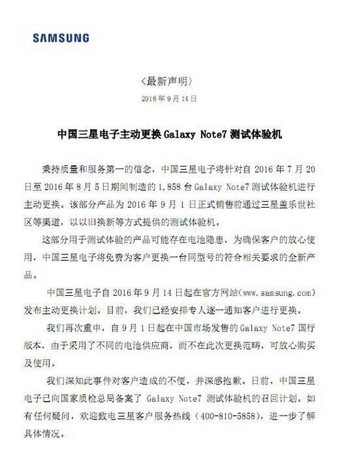 为了保证万无一失,9月14号,三星甚至把所有的店面展示机都给换了新,以消除安全隐患