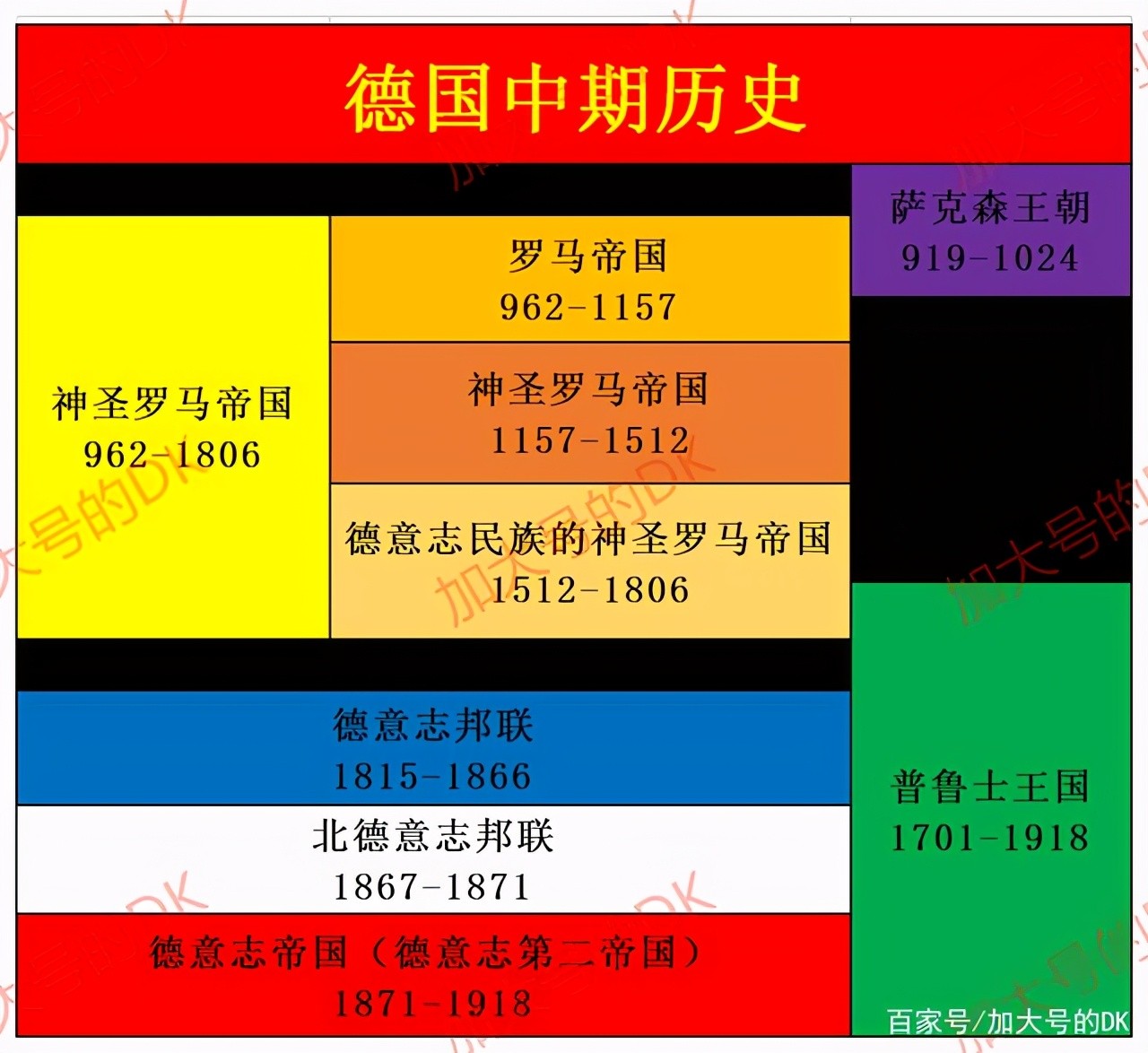 德意志历史上有三个帝国(当然不知道以后会不会还有【滑稽】),德意志第一帝国通常指的是神圣罗马帝国时期;德意志第二帝国指的是德意志帝国时期(也就是1871-1918年的德意志国期间);德意志第三帝国就是纳粹德国。