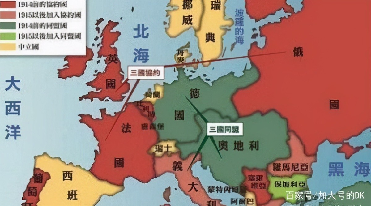 在德皇威廉二世时期,欧洲就已经剑拔弩张,两大军事集团已经形成“三国同盟”和“三国协约”,这也是后来一战爆发后的基本格局(意大利后来当了二五仔,投到了英法一边)