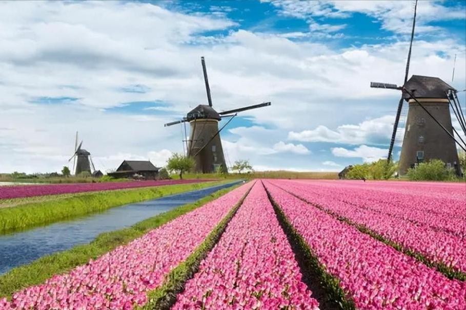 漫步在今日荷兰的郁金香花田,五彩斑斓的花海在春风中摇曳生姿。游人们驻足欣赏,花农们辛勤劳作,一派祥和景象。
